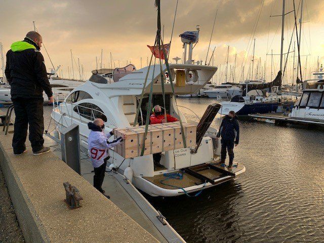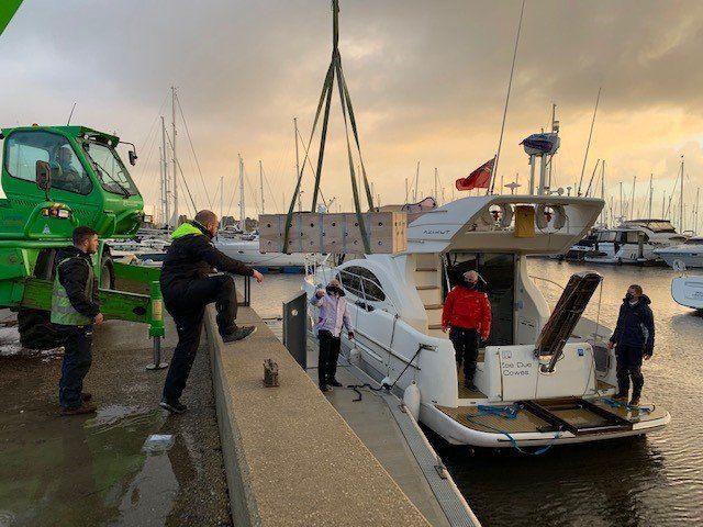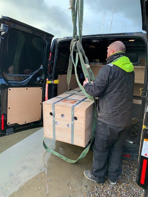 On arrival at the Marina the Funeral Directors will be directed to park their van adjacent to the crane where the transfer process will be commenced. We use a commercial crane to lift the casket aboard our vessel